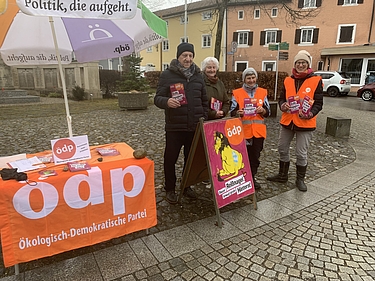 Regen? Kälte? Kein Problem! Das Kandidaten-Team der ÖDP stand am Samstagvormittag, 21. Februar 2026, am Kriegerdenkmal in Laufen für Gespräche bereit…